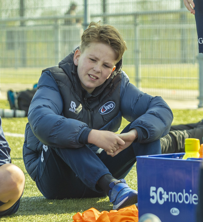We houden traditie getrouw de voorbespreking in de kleedkamer. Welke variant wordt het vandaag? De 2-4-1, 2-3-2 of de 3-3-1….? Of misschien wel alle drie. De kinderen luisteren in ieder geval aandachtig en lijken er voor te willen gaan vandaag.