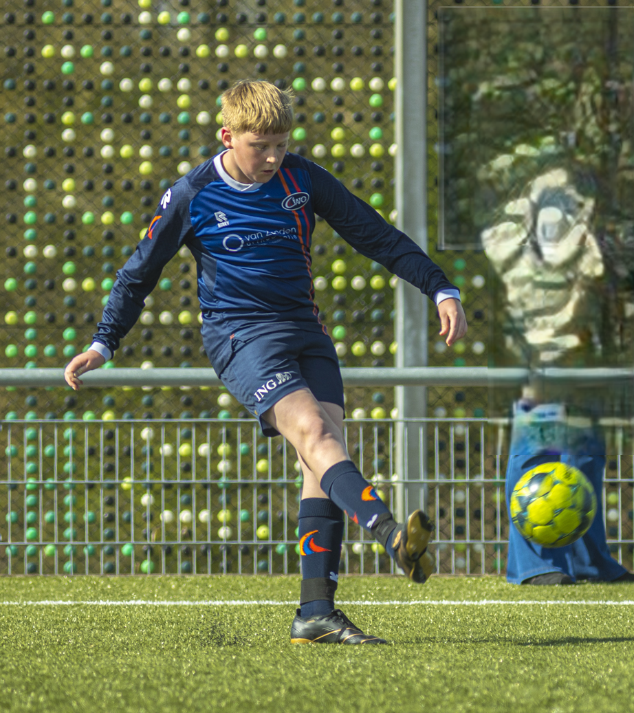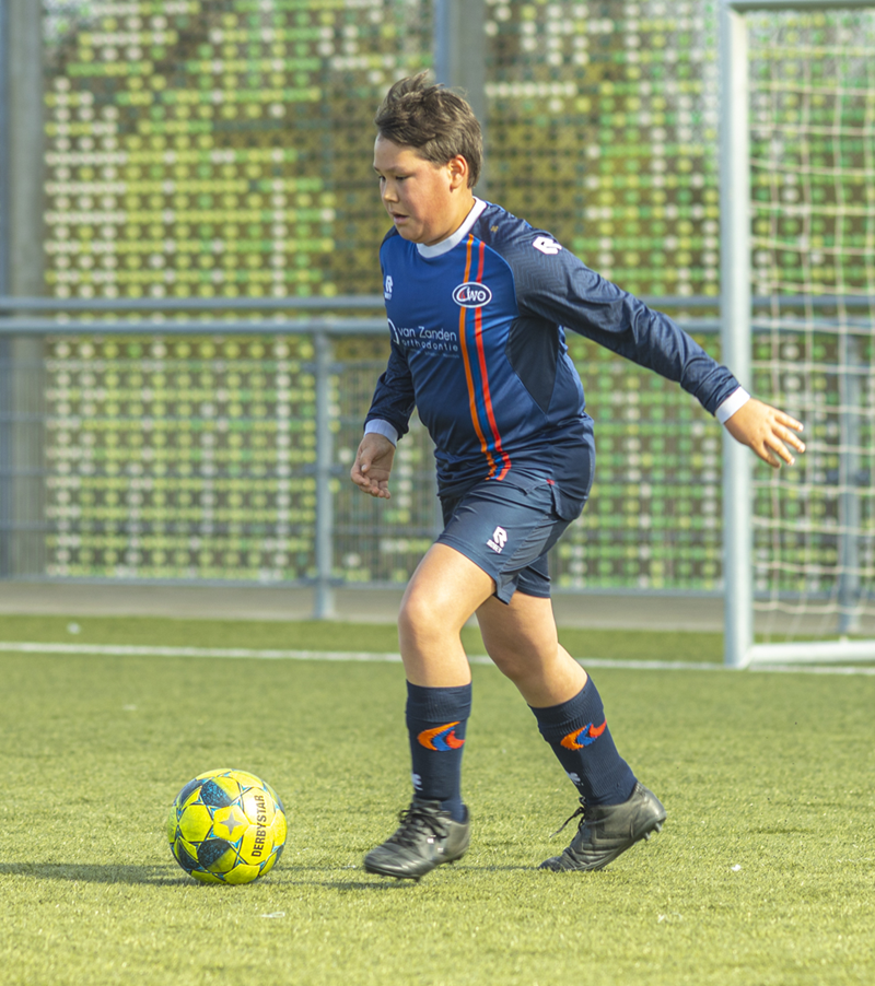 Na een goede ‘bal afpak’ actie van Jesper op het middenveld hebben we weer balbezit en speelt hij vakkundig Furkan in de loop aan. Furkan kapt en draait tot aan de achterlijn en ziet de goed meegelopen Finn vrij staan voor de goal die de bal er goed inschiet! 0-1 voor CWO! Mooie aanval!