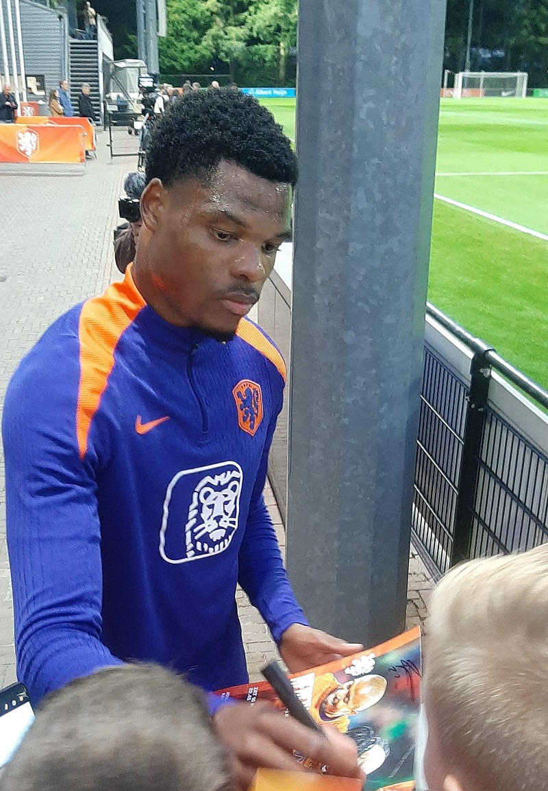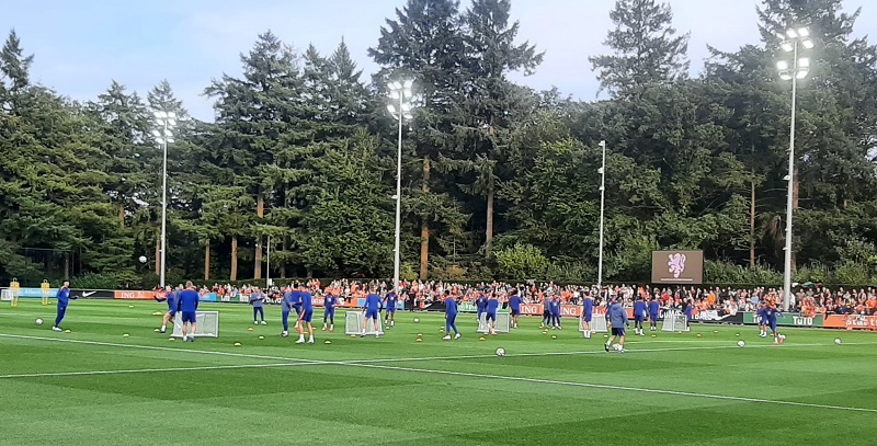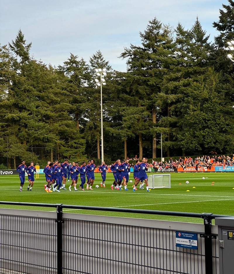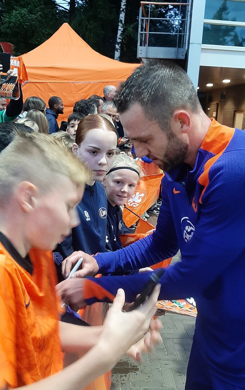 Denzel Dumfries en Stefan de Vrij gaan voor onze neus op het veld nog wat intensief heen en weer rennen en de CWO-ers maken ze hard en luid duidelijk dat ze wel een handtekening van hun willen.