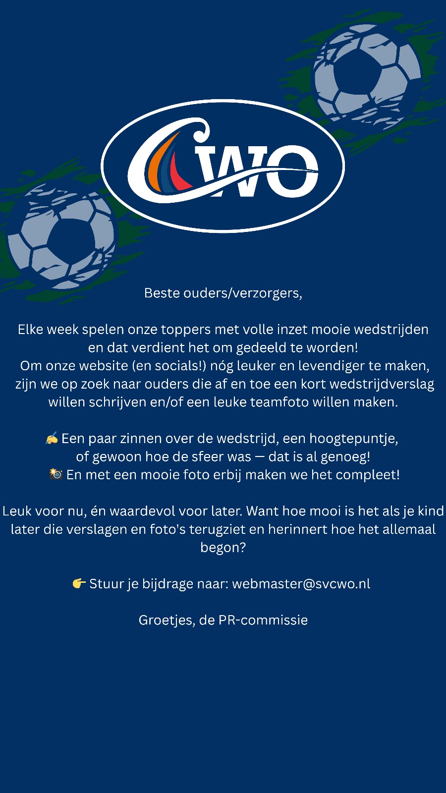 Sv CWO geeft volledige support aan het programma Niemand Buitenspel, een initiatief van onze sponsor ING en de KNVB dat kinderen uit gezinnen met geld...